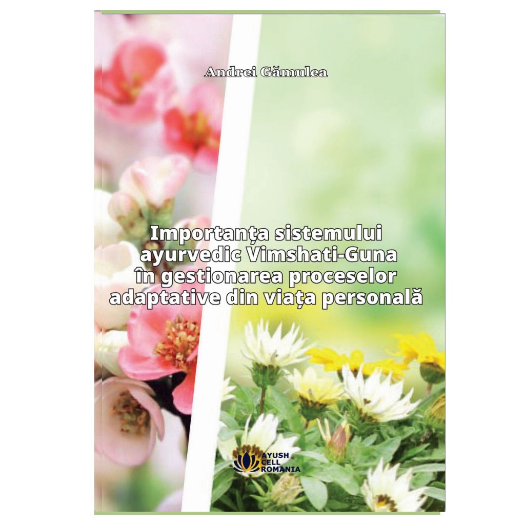 Descriere: Lucrarea prezintă sistemul ayurvedic Vimshati-Guna, alcătuit din douăzeci de calități fundamentale care influențează echilibrul dosha-urilor și procesele vitale ale ființei umane. Prin înțelegerea acestor calități, cititorul dobândește repere clare pentru adaptarea alegerilor zilnice, gestionarea mai bună a proceselor adaptative și cultivarea unei vieți armonioase. Această expunere reprezintă o punte între înțelepciunea tradițională a Ayurveda și nevoile omului modern, oferind o perspectivă accesibilă și aplicabilă în viața de zi cu zi.
